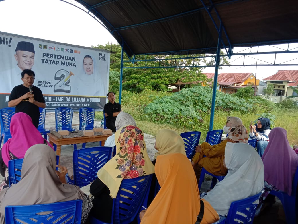 PALU, EKBISTA.COM – Tim pemenangan calon Wali Kota dan Wakil Wali Kota Palu nomor urut 2, Hadianto Rasyid -Imelda Liliana Muhidin menggelar sosialisasi program pembangunan berkelanjutan di BTN Palupi, Kelurahan Palupi, Kecamatan Tatanga, Senin (30/9/2024).