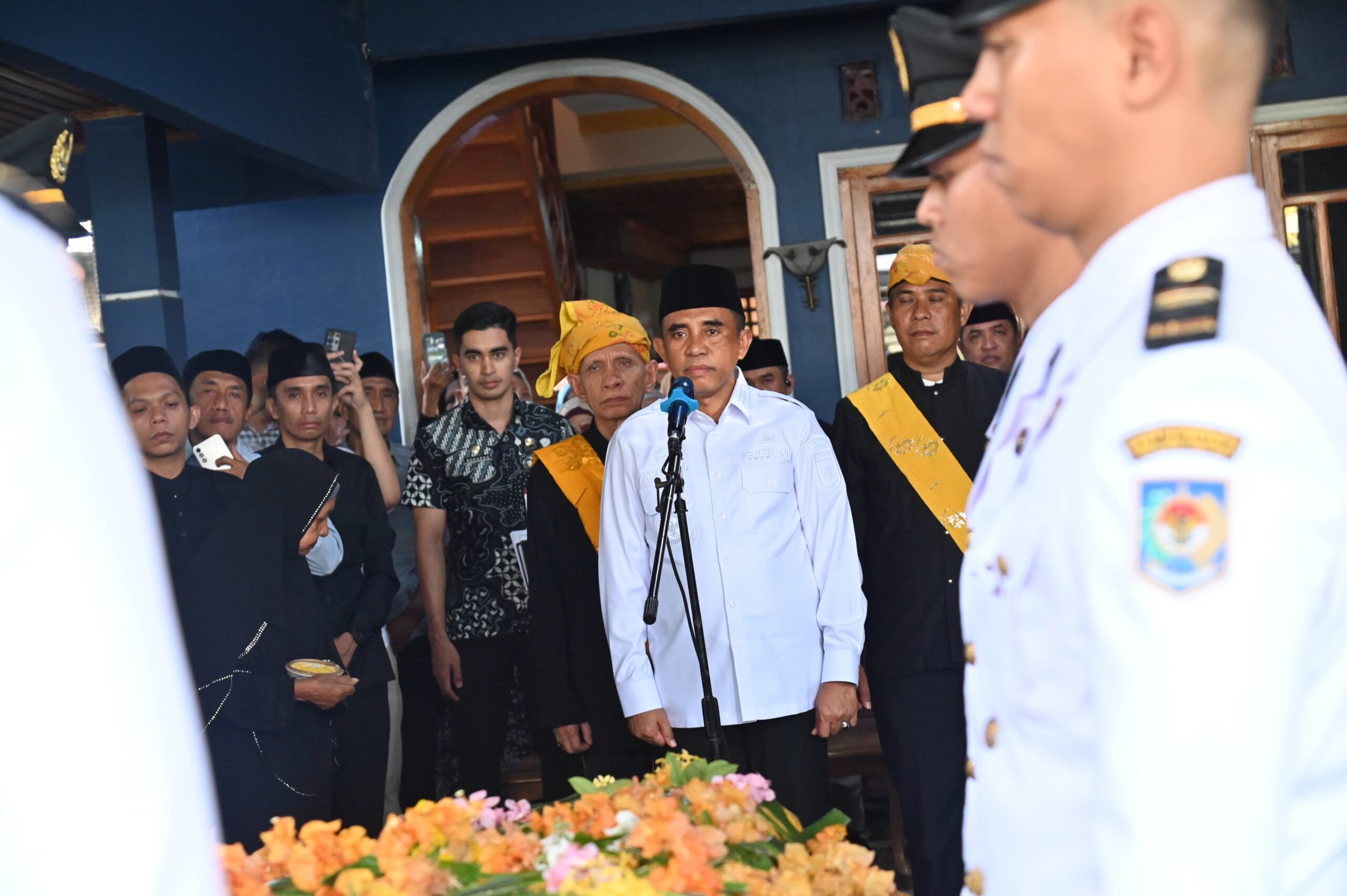 Gubernur Sulteng, Dr.Anwar Hafid,M.Si menjadi Inspektur Upacara Pelepasan Jenazah Almarhum Drs. Moh. Rum Parampasi, Jum'at (14/3/2025). Foto: IST
