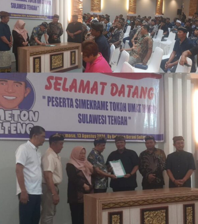 Dukungan itu dikemas dalam giat Simekrame Tokoh Umat Hindu BERANI Sulteng yang diselenggarakan di Paramasu Hotel Palu, Selasa Malam (13/8/2024).