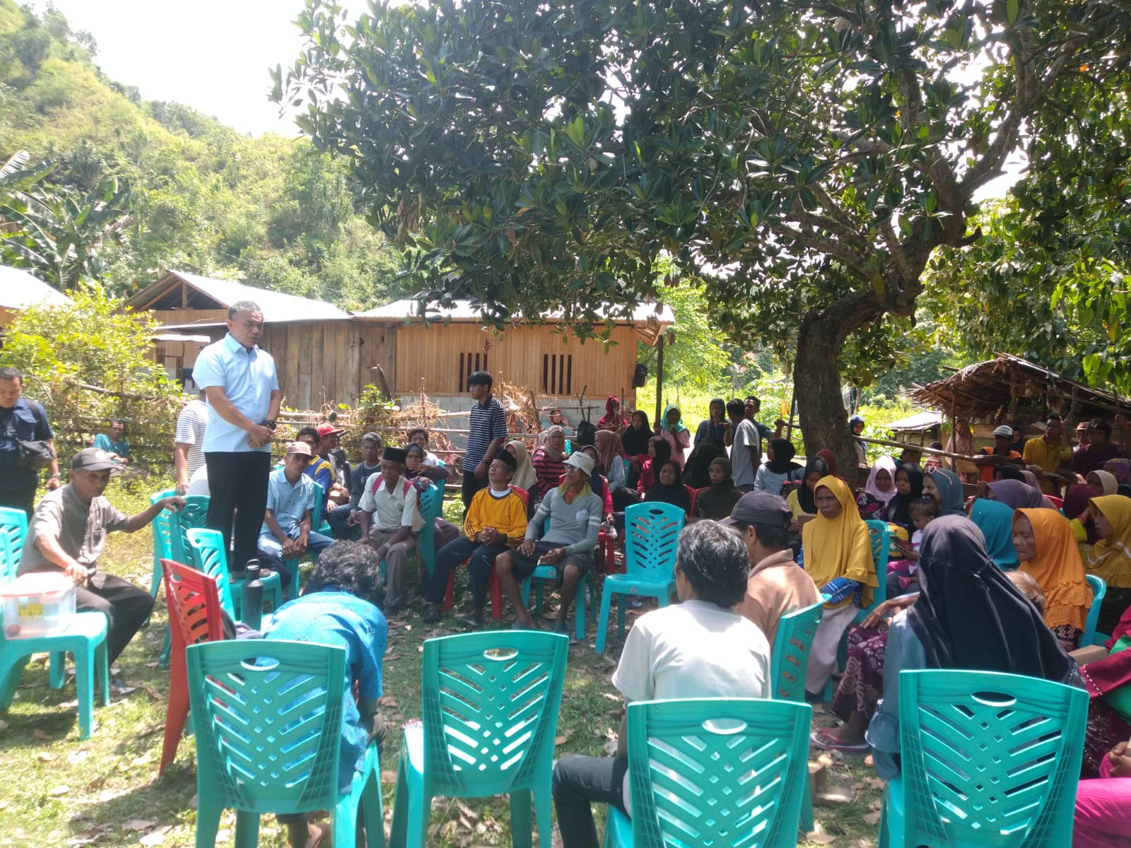 “Bisa dibayangkan berapa anggaran negara yang dibutuhkan untuk membangun tujuh buah jembatan sepanjang jalur menuju Uwentumbu,” kata Hadianto yang terpaksa menggunakan kursi sebagai media pengganti panggung, agar mudah terlihat oleh warga yang hadir.
