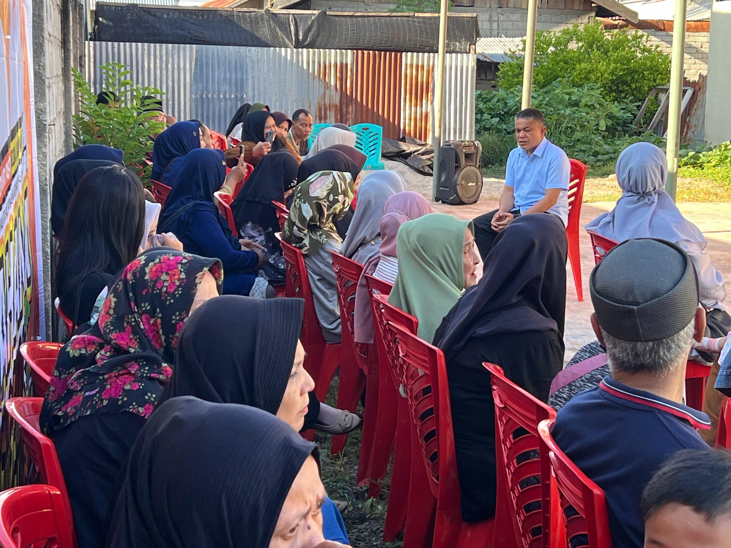 Hadianto Rasyid melakukan pertemuan dengan masyarakat di Jalan Urip Sumoharjo, Kelurahan Besusu Timur, Kecamatan Palu Timur, Selasa (15/10/2024). Foto: IST